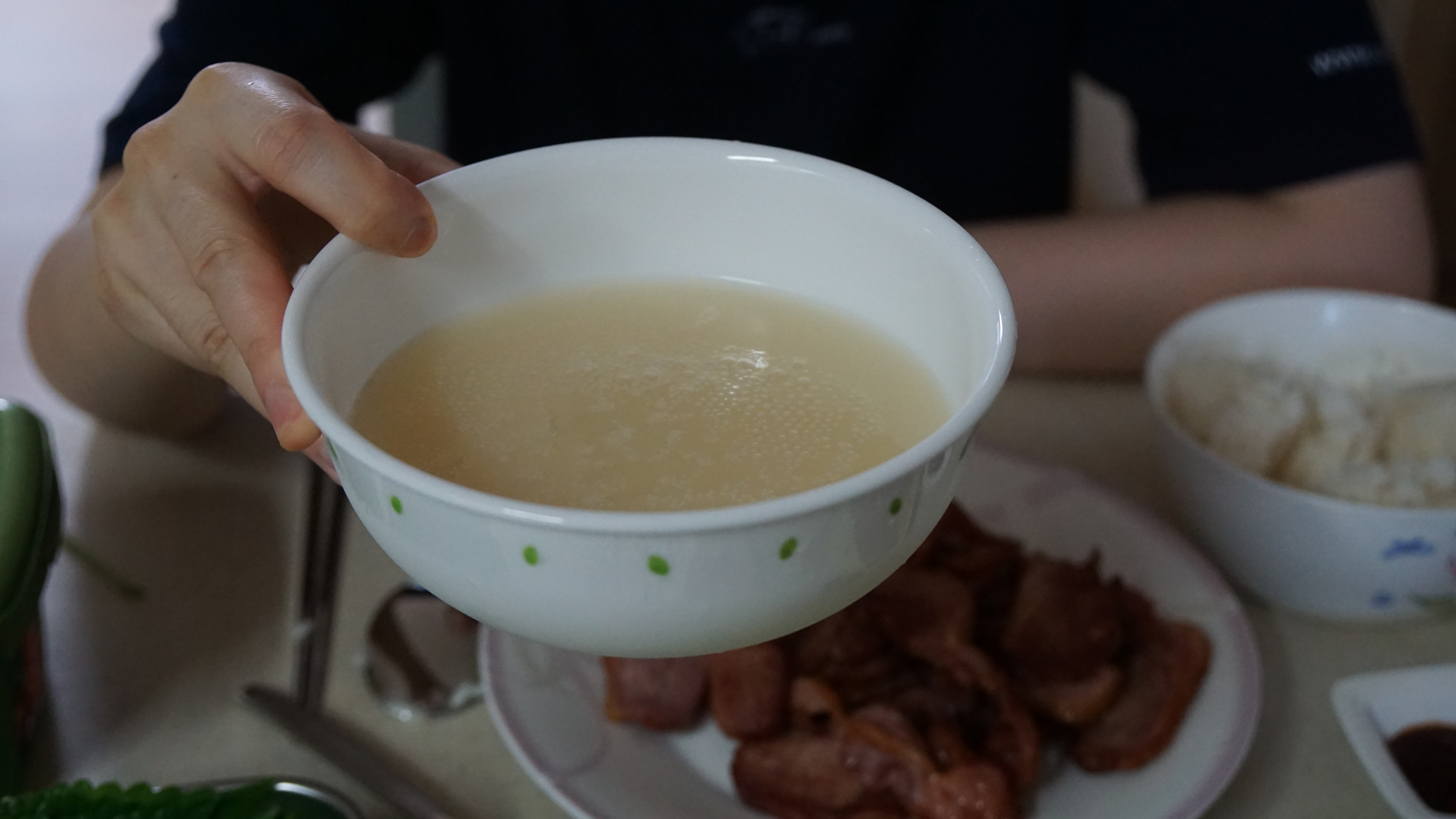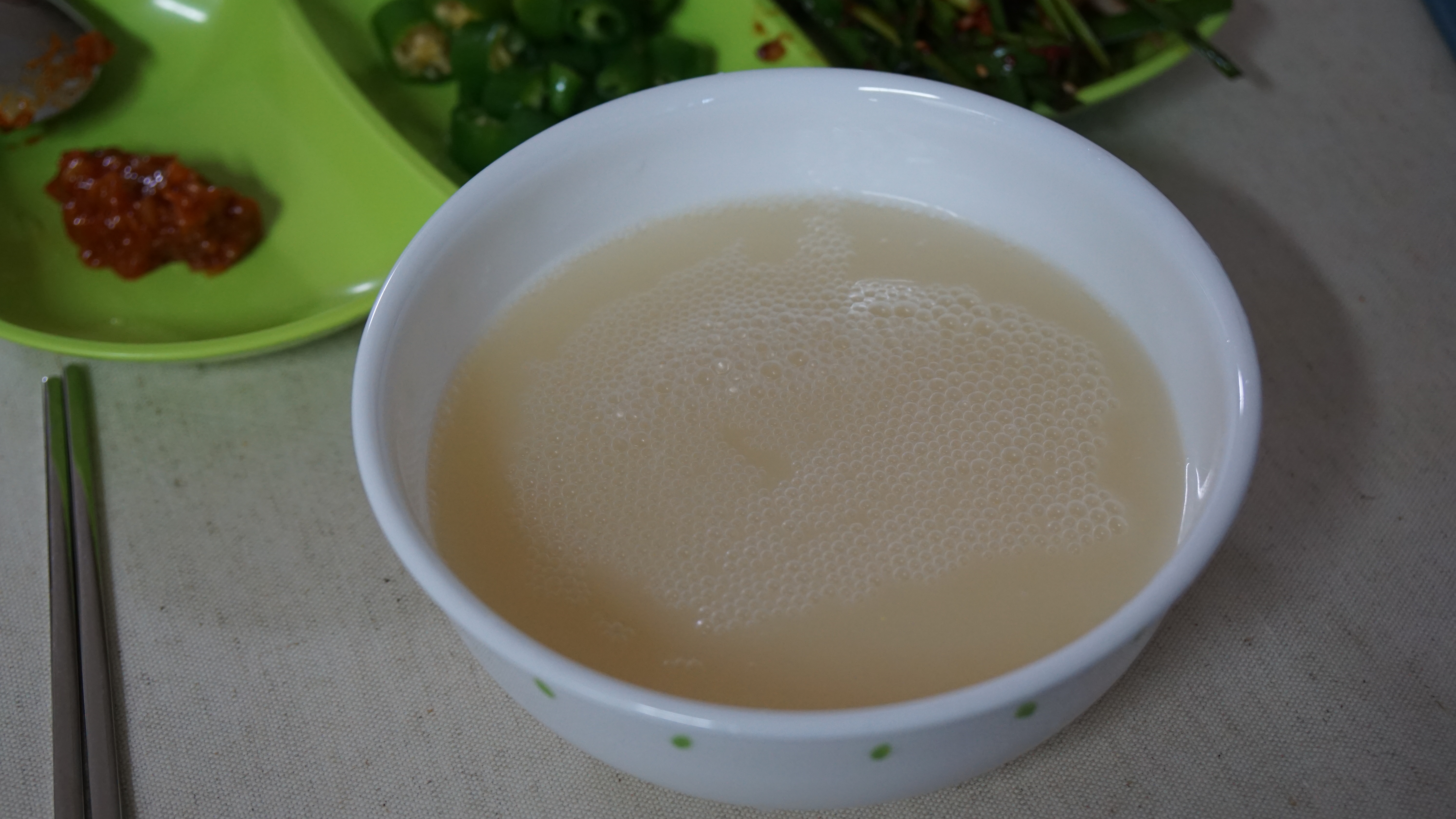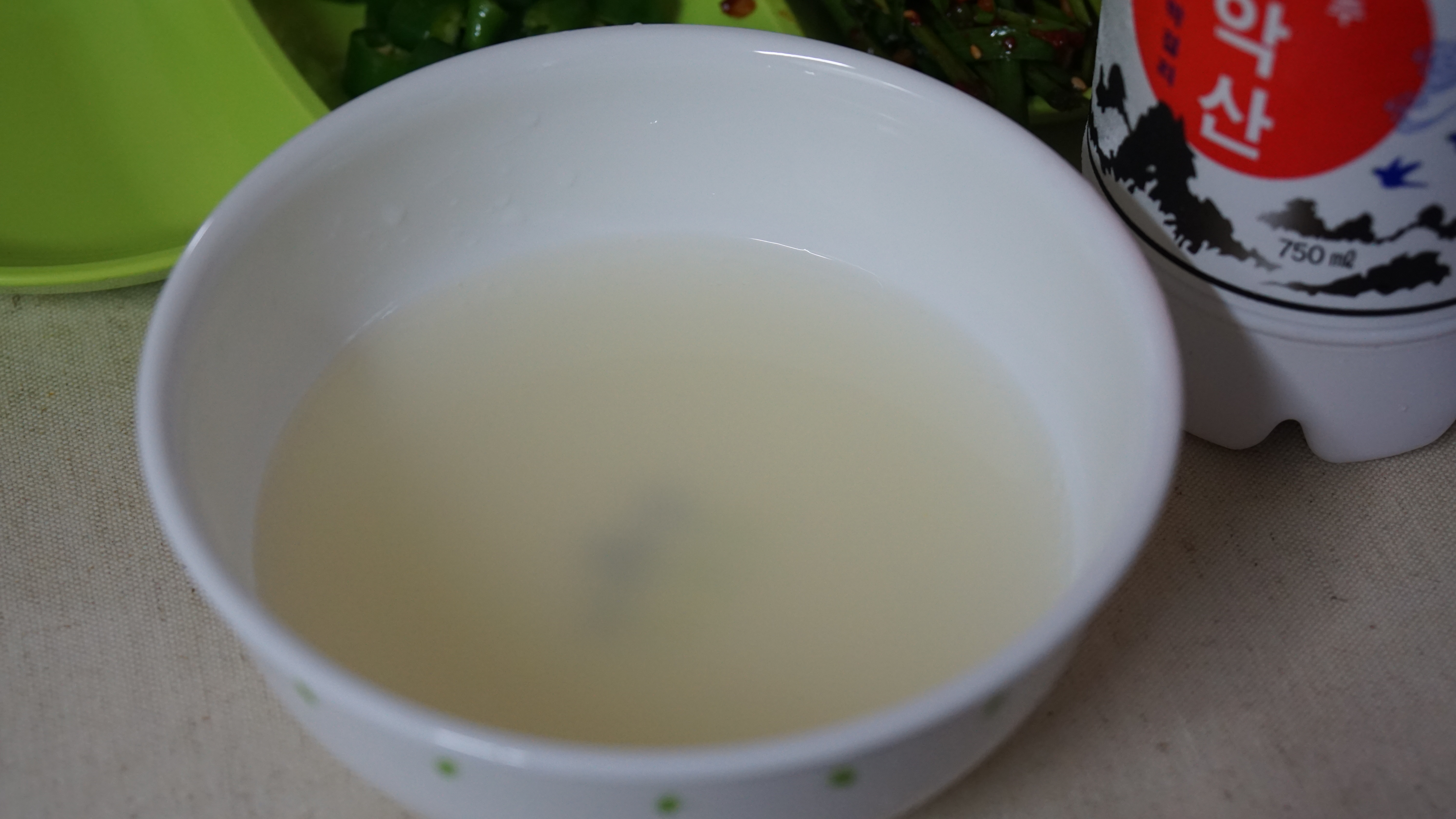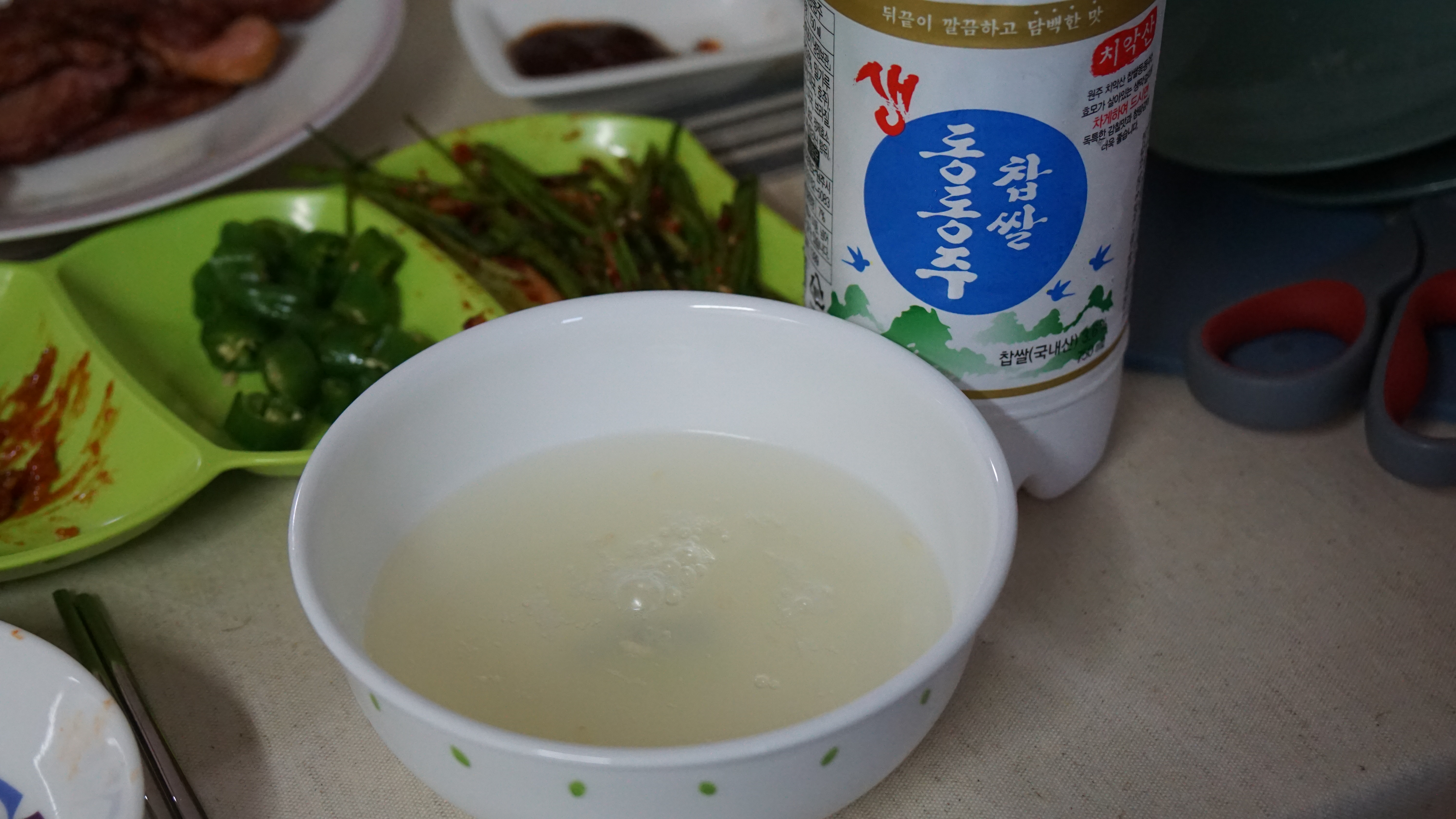 아마 막걸리안에서 섞이지 않고 맑은 부분만 따로 걸러내면 그게 동동주가 맞는건가? 동동주는 섞어서 따라도 사진처럼 맑은 모습의 술이다. 생각해보면 동동주를 마셔본 적이 있었던가? 그래도 막걸리는 많이 마셔봤는데 동동주는 처음이다. 동동주 역시 청량감이 느껴지는 소리와 함께 시원하게 따라서 마셨다. 막걸리보다 훨씬 깔끔하고 청량한 느낌이 든다. 확실히 맛있긴 하지만 개인적으로는 막걸리보다 뭔가 2% 부족한 느낌이 든다. 평소 막걸리를 즐겨 마시지 않아 정확히 무엇이라고 말하지는 못하겠다.